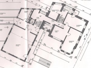 Nur um ein Gefühl zu geben, im Folgenden ein paar Grundrisse aus der Planung 2006 (bei anderer Außenansicht). Falls es zu einer Anbaulösung kommen sollte, so müssen auf jeden Fall die damaligen Vorstellungen überarbeitet werden.